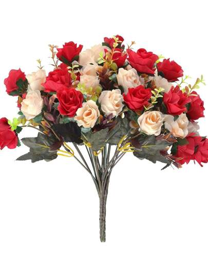1/3PCS 人造玫瑰花丝桉树花束情人节礼物婚礼装饰 DIY 花环材料,新娘手捧花装饰配件,婚车装饰,门楣拱门装饰,家居,餐厅,卧室,花瓶装饰,生日派对装饰材料新年礼物,情人节,礼物 - 紅色 - 查看 6