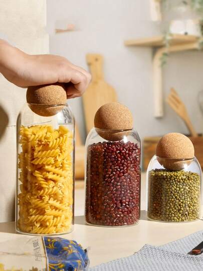 1/3 件玻璃罐套装带软木球盖,用于厨房储存 - 密封玻璃食品罐,用于谷物和意大利面咖啡、糖、香料和零食 - 17 盎司/500 毫升容量玻璃储物瓶谷物软木密封罐厨房调味料储物罐 - 彩色 - 查看 1