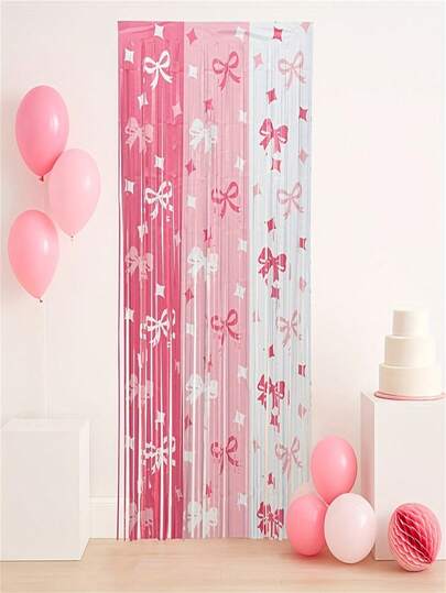 1/3件装粉白蝴蝶结主题塑料流苏彩带 - 1x2米长,耐用雨丝流苏,带有精致的蝴蝶结图案,非常适合生日、婚礼、迎婴派对等场合。 - 彩色 - 查看 3