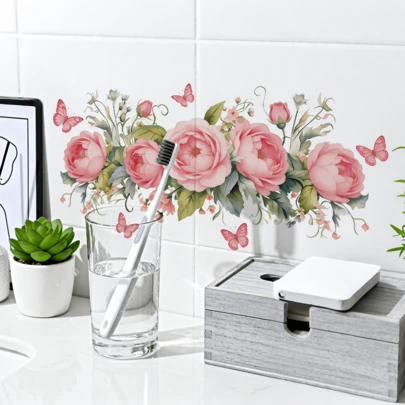 1/4片装,色彩鲜艳的花卉墙贴,饰以蝴蝶图案。可移除、自粘、防水。适用于浴室、水槽、橱柜、卧室和墙面装饰。