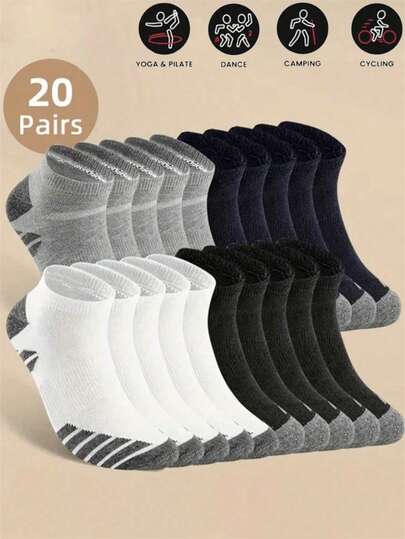 1/5/10/20 双男士防臭吸汗低帮袜,舒适透气,适合日常和户外穿着,四季皆宜 - 彩色 - 查看 20