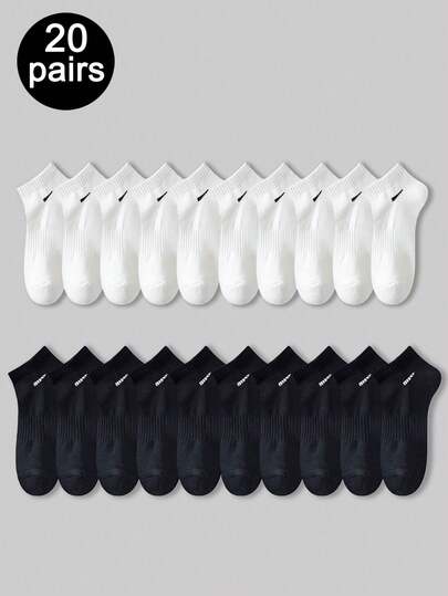 1/5/10/20 件装黑白腿套套装,简约百搭休闲运动隐形踝部腿套,男女通用,春夏秋三季 - 彩色 - 查看 12