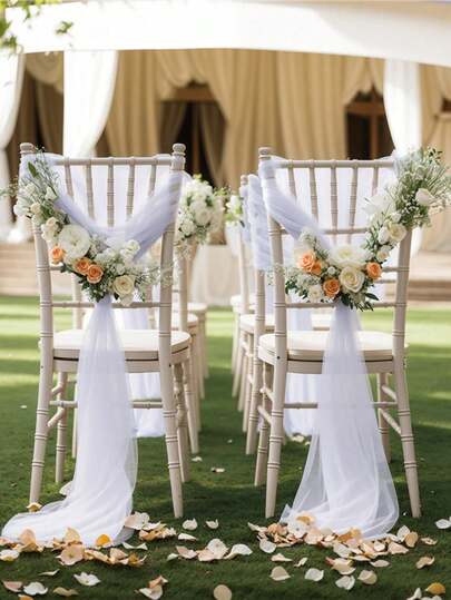 1/5/10 件白色椅子饰带 63 英寸 X 39 英寸长过道婚礼椅背装饰织物透明教堂薄纱椅子窗帘,适用于婚礼、秋千和背景装饰、生日派对装饰、舞台、帐篷、婚礼桌椅装饰 - 白色 - 查看 2