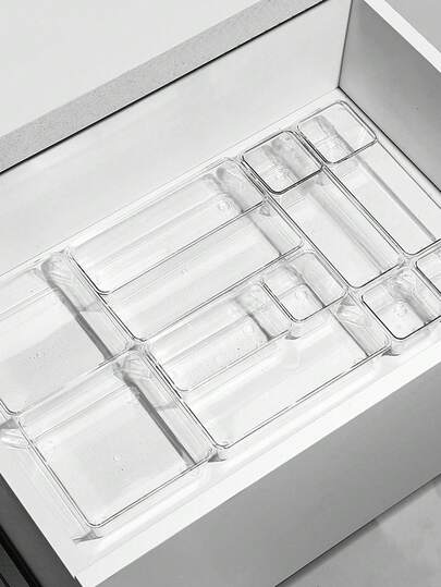 1/5/7/11 件托盘套装,梳妆台抽屉透明储物盒套装,4 种尺寸的托盘,多用途,用于化妆品、钢笔、小工具,非常适合浴室、梳妆台、办公室抽屉、送给朋友的礼物、浴室配件、化妆准备、厨房用具、文具收纳、办公桌整理。 - 波點透明 - 查看 13