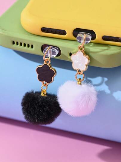 1/5/9件时尚毛绒四叶草和五瓣花吊坠,适合情侣、朋友作为礼物,手机/电脑防尘、装饰和保护 - 彩色 - 查看 6