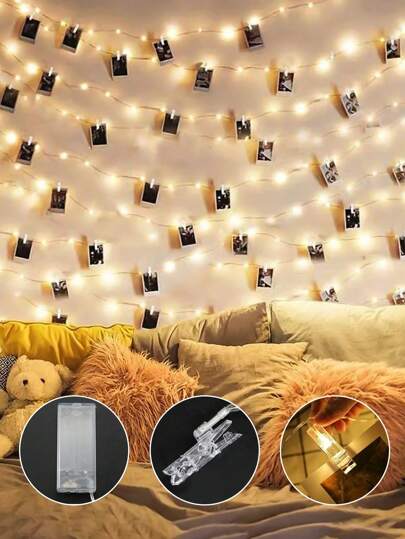1.5m/3m/6m相片夾鋼絲燈,電池供電,暖白色,非常適合派對、婚禮、節日和聖誕節裝飾