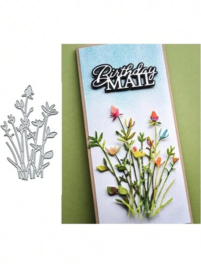 1個漂亮的花束信封賀卡裝飾切割模具,碳鋼金屬壓花紙藝刮刀切割模板,金屬中空蝕刻diy刀具模具 - 銀色D - 查看 1