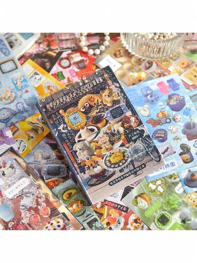 1本四季广播剧主题贴纸书,复古昭和时代日本杂志/漫画风格,学生手账贴纸书 - 復古風 - 查看 2