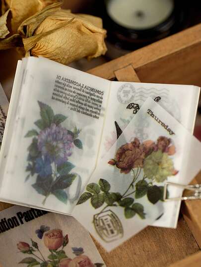 1 本 50 张复古英式植物花卉票据清单迷你笔记本 DIY 剪贴簿日记装饰纸,适用于学校用品,返校 - 均碼 - 查看 6