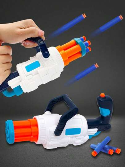 1 盒创意儿童软弹玩具枪太空加特林海绵弹手动发射器,对儿童安全,包含 10 发软弹 - 彩色 - 查看 1