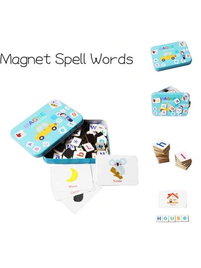 1 盒磁性单词拼装拼图、单词学习、数学学习、英语学习卡、趣味拼图、蒙特梭利、婴儿玩具、返校用品、启蒙玩具、拼写玩具 - 彩色 - 查看 6