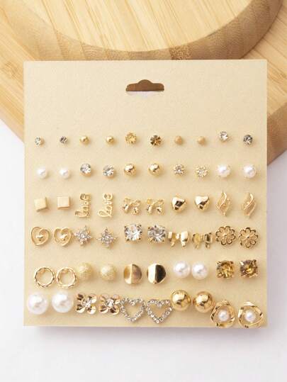 1 张卡片包含 30 对欧美时尚耳环,带有水钻、合金、几何设计、人造珍珠、蝴蝶和花卉主题。适合聚会、度假或日常佩戴情人节、妈妈、母亲、母亲节、礼物 - 彩色 - 查看 1