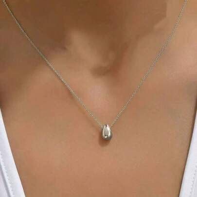 1. 经典简约女士水滴吊坠项链 - 銀色 - 查看 1