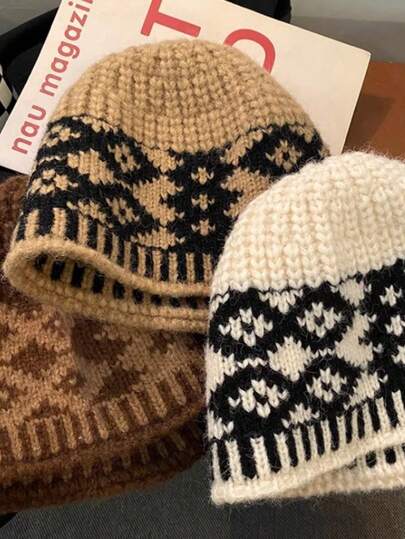 1 Fair Island 复古菱格纹针织渔夫帽,适合秋冬季节佩戴,大头围设计,可露出脸型,小巧保暖,适合户外穿着,是女士冬季服装的理想之选。 - 彩色 - 查看 1