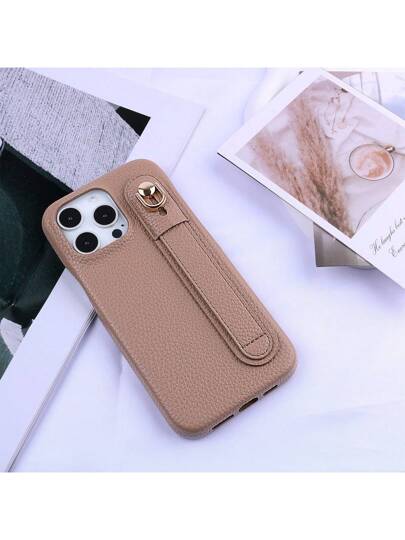 1 浅棕色奢华荔枝纹腕带 PU 皮革手机壳适用于 iPhone 16 15 14 Plus 13 12 11 Pro Max - 淺棕-003 - 查看 1