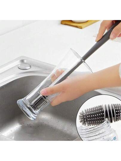 1 PC Multi-Color Silicone Cup Cleaning Brush With Long Handle – Flexible Bristles For Sports Bottles, Water Glasses, And More – No Dead Angle Design, Use, Bottle Cleaning Brush