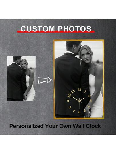1 件个性化方形静音挂钟,25x40 厘米,铝合金框架挂钟上定制您的照片,适合送给家人、爱人和宠物的礼物 - 彩色 - 查看 9