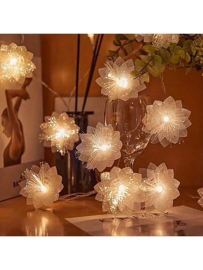 1入組led創意雪花串燈,節日裝飾用品,電池盒串燈,室內花園節日裝飾 - 白色 - 查看 1