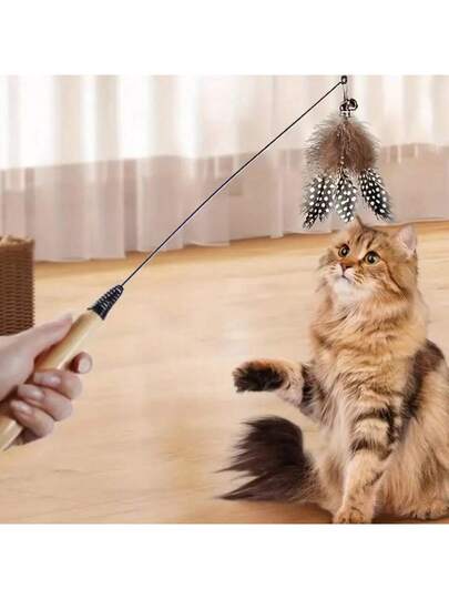 1 件木柄彈簧逗貓棒羽毛鈴可更換頭
