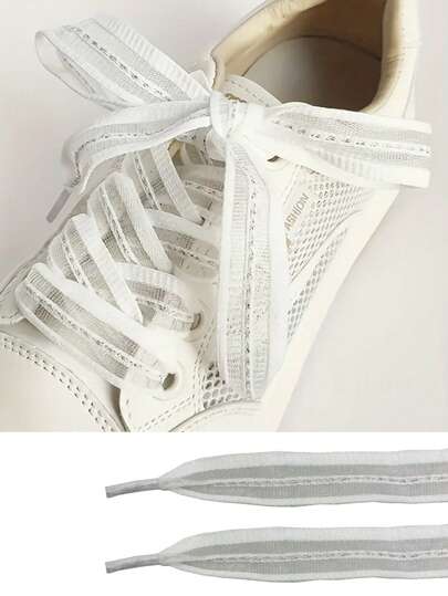 1双2厘米宽白色镂空扁平鞋带,带银线,透明条纹鞋带,适用于鞋子