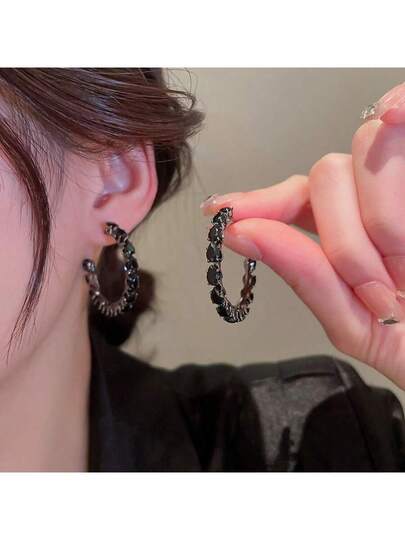 925銀針&掉落式設計c型耳環,適用於女性日常珠寶收藏和節日贈禮 - 黑色 - 查看 1
