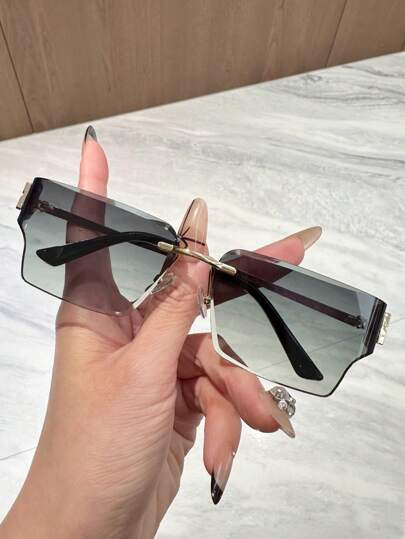 1 副不对称无框金属框架时尚眼镜,适合户外旅行、装饰和强光保护,适合夏季海滩度假、户外、旅行 - 彩色 - 查看 1