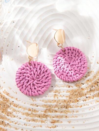 1 对波西米亚风镂空几何藤条编织环状耳环,海滩风格圆形耳环,适合女士 - 淡紫色 - 查看 1