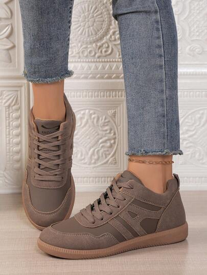 1双透气系带休闲运动鞋,多功能跑步鞋,时尚男女通用运动鞋,适合春、夏、秋季穿着 - 棕色 - 查看 1