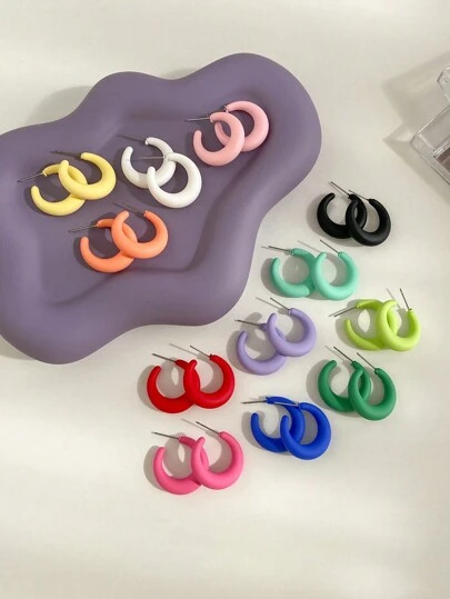 1 对经典个性化糖果色创意新月环状耳环,适合女性日常佩戴 - A款式 - 查看 11
