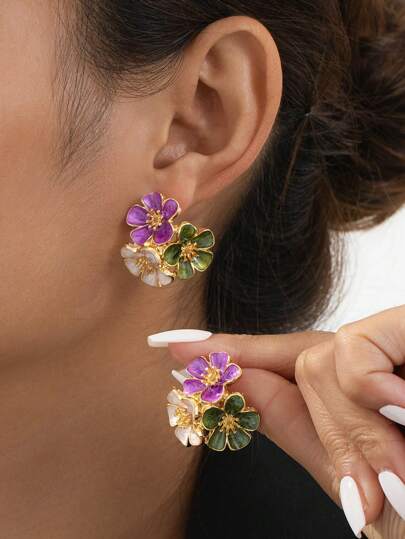1 对彩色创意甜美花朵形状耳钉,优雅度假风格,情人节礼物 - 彩色的 - 查看 1