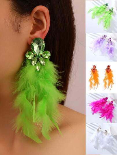 1 对彩色性感夸张羽毛和水晶耳钉,时尚派对配饰 - 羽毛 - 查看 28