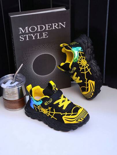 1双舒适、时尚、轻便、透气的儿童运动鞋,系带设计,易于穿脱,适合室内/室外,四季皆宜。