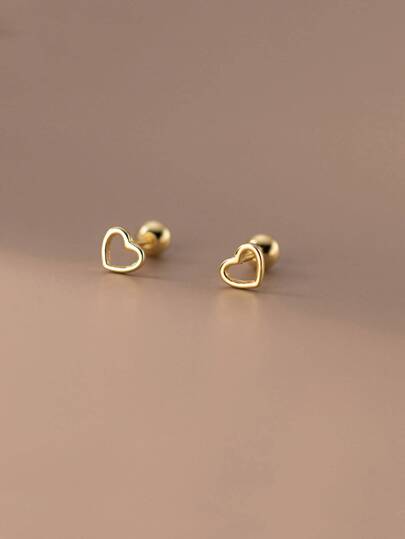 一对精致独特设计空心心形耳钉,螺旋耳夹 - 金黃色 - 查看 6