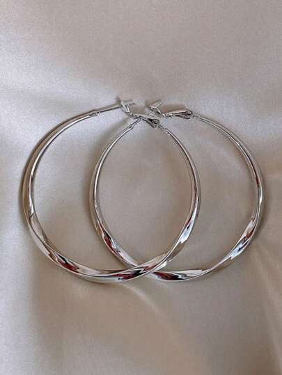 1 对时尚欧美金属环状耳环 - 3499銀色 - 查看 3