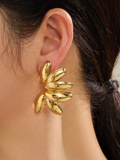 一对夸张经典金属花瓣设计耳钉,女士时尚 - 耳環 - 查看 1