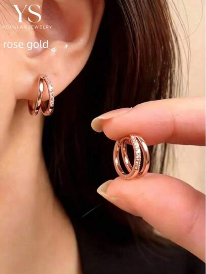 1对精美耳环 - 时尚与优雅的完美融合,双层设计,铜质微镶嵌耳钉,玫瑰金色调,适合年轻女士和学生佩戴