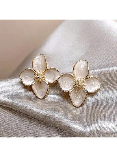 1 Pair Fashion Retro Red Lotus Dangle Earrings, Enamel Painted Floral Stud Earrings, Accessory Valentines,Mom,Mother,Mother's Day,Gift