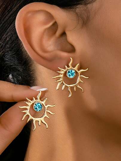 一对时尚优雅的镶钻太阳耳钉,简约风格,适合女性佩戴,可用于休闲、度假、约会、节日等场合。