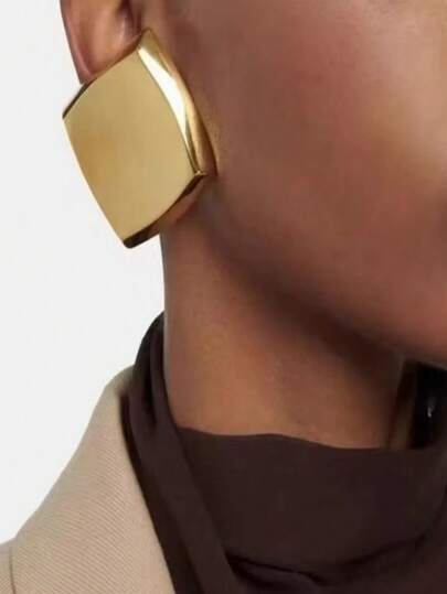 1 对时尚夸张几何立方体耳环,光泽奢华欧美风格 - 金黃色 - 查看 4