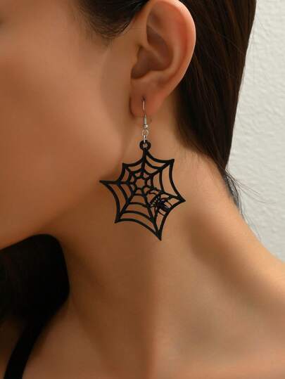1 对哥特式黑色蜘蛛网镂空吊坠耳环,高级时尚经典百搭深色风格,万圣节礼物,适合派对、晚宴、赠送朋友 - 黑色 - 查看 6