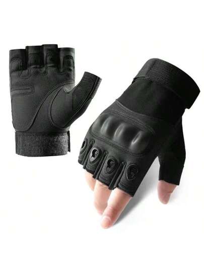 1双半指壳摩托车户外骑行手套 - 黑色 - 查看 1