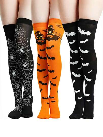 1 双万圣节过膝袜、万圣节角色扮演袜、万圣节搞笑恶作剧袜、万圣节派对服装道具、圣诞节、Y2K - 彩色 - 查看 4