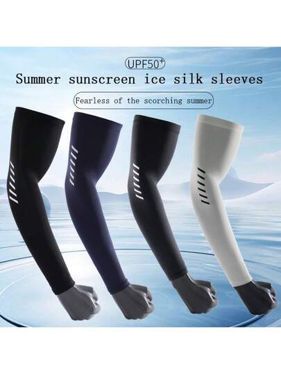 1 双冰丝防紫外线臂套,运动骑行户外防晒袖套,夏季驾驶保暖臂套,送给男友、父亲的礼物,白色手套臂套,秋季服装,万圣节服装,黑色臂套,男士礼物 - 彩色 - 查看 3