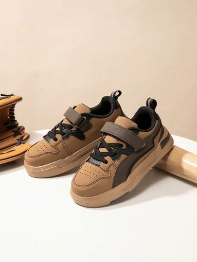 1 双儿童休闲运动鞋,采用拱形 PU 钩环设计,防水耐磨,适合所有季节 - 棕色 - 查看 1