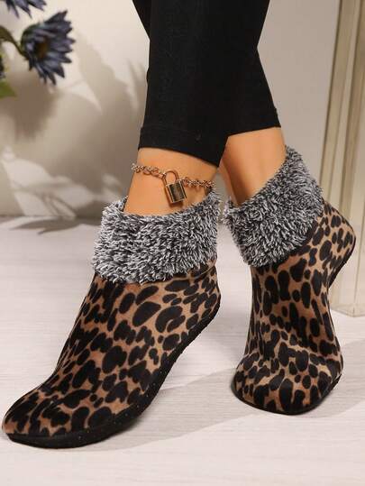 1 双豹纹浅口船袜,时尚百搭室内袜,舒适家居拖鞋,女式花卉印花拖鞋袜