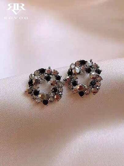 1 对奢华个性化几何珠宝,优雅精致的全水钻玻璃高端独特耳环适合派对、聚会和日常佩戴 - 黑色 - 查看 1