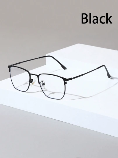 一副男士方形金属框透明镜片眼镜,纤细金属框,适合日常佩戴及各种场合,是送给男友的绝佳情人节礼物 - 彩色 - 查看 1