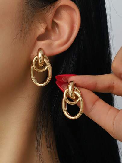 1对简约几何金属心形耳环,适合女性日常佩戴 - 彩色 - 查看 1