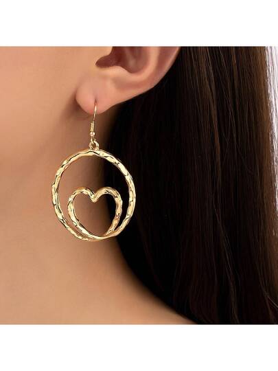 1 对简约女士心形耳环 - 金黃色 - 查看 4