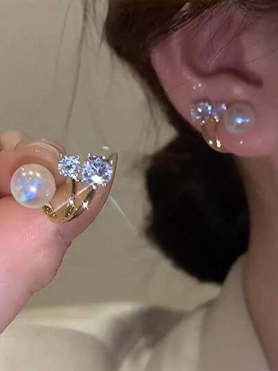 topshiny 1 对简约韩国时尚优雅钻石和珍珠耳钉,适合派对和日常佩戴 - 彩色 - 查看 1
